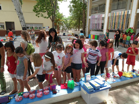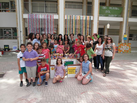 Cucharas, envases, tapones, papel, cartón, latas... han sido algunos de los materiales de desecho que la comunidad educativa del CEIP San Isidoro ha utilizado para crear un mundo de fantasía e imaginación o, simplemente, objetos útiles, a través del taller de elaboración de objetos con materiales de reciclaje. Un taller que se viene desarrollando durante todo el curso escolar y que hoy, 5 de junio, ha expuesto sus creativos trabajos en el patio del colegio para sumarse a la conmemoración del Día Internacional del Medioambiente.